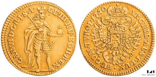 Karel VI. (1711-1740) Dukát 1740 (z roku 1739), Praha, Scharff, Hal. 1788, 3,43 g
