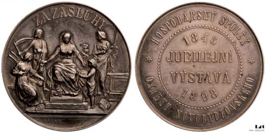 Nový Bydžov Medaile za záslohy pro hospodářský spolek, Výstava 1898, Ag 45 mm, 45,66 g, sig. Pichl