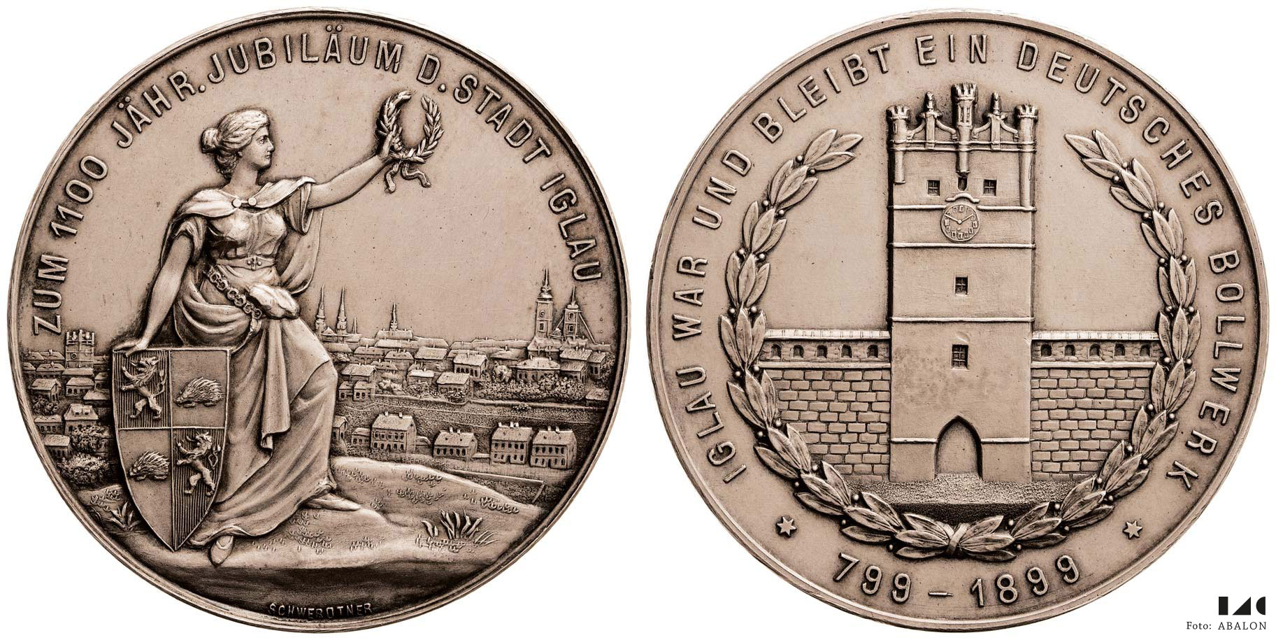 Jihlava Medaile k 1100. výročí města 1899, Ag 41 mm, 27,85 g, sig. Schwerdtner