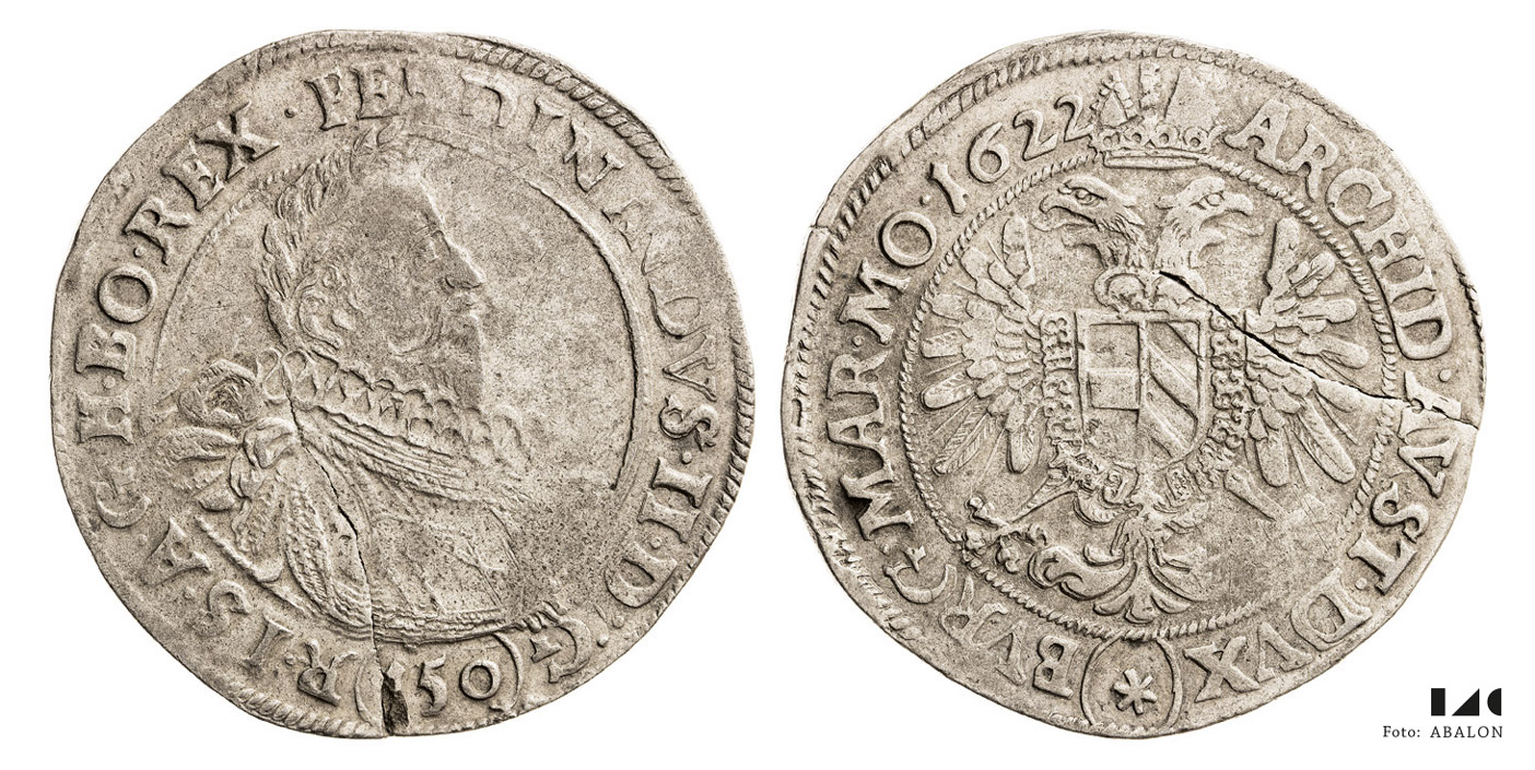 Ferdinand II. (1617-1637) Tolar (150 krejcar) 1622, Kutná Hora, Hölzl, Hal. 769, 25,31 g, napr.