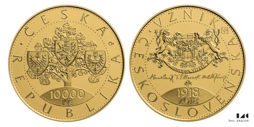 10 000 Kč 2018, 100 let ČSR, 1 OZ Au, etue, karta