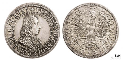 Arc. Ferdinand Karel (1632-1662) 2 tolar b.l., Hall, Dav. 3363 A, hlava bez koruny, 56,46 g