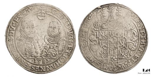 Friedrich Wilhelm a Johann (1573-1602) Tolar 1587, Saalfeld, de Mey 960, 28,82 g