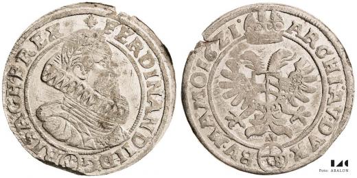 Ferdinand II. (1617-1637) 48 krejcar 1621, Brno, Pecz, Hal. 859, varianta opisu, naprasklý, okraj
