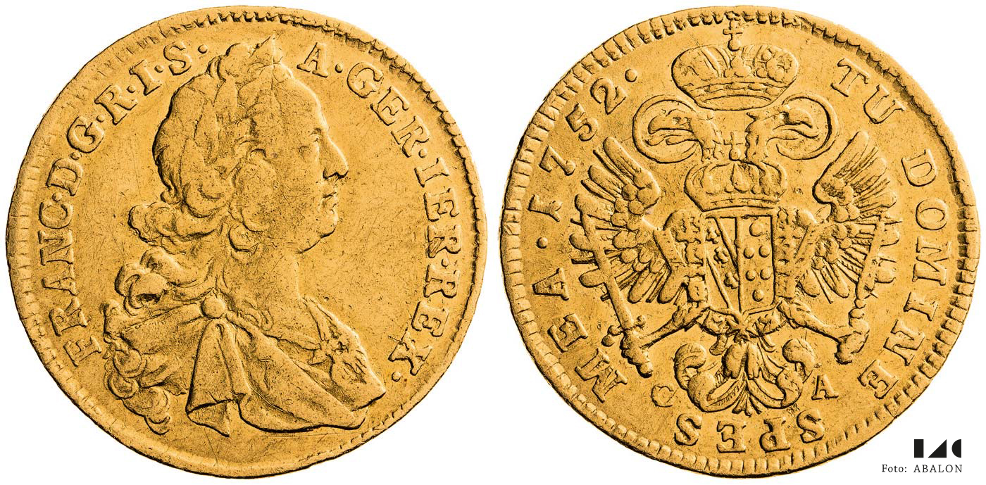 František Lotrinský (1745-1765) Dukát 1752 CA, Sedmihrady, Her. 74, 3,44 g