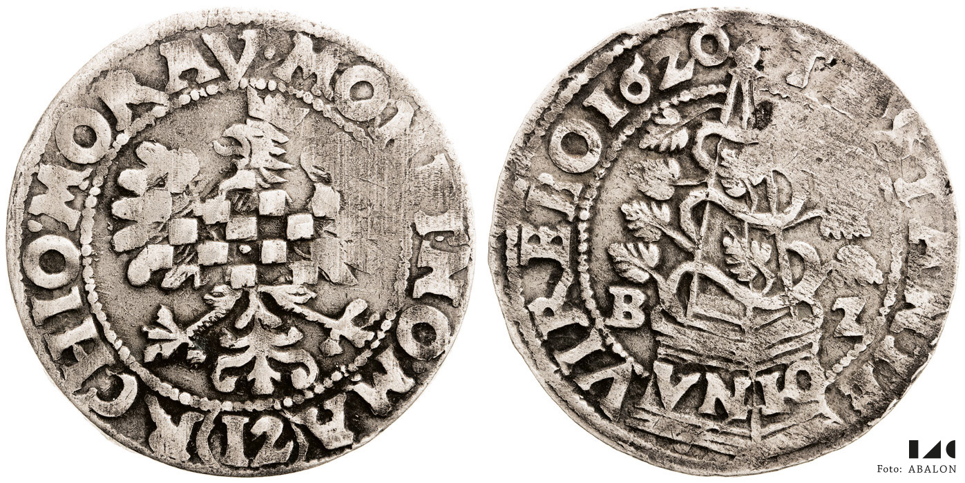 Moravské stavy 12 krejcar 1620 BZ, Olomouc, Zwirner, Hal. 624a