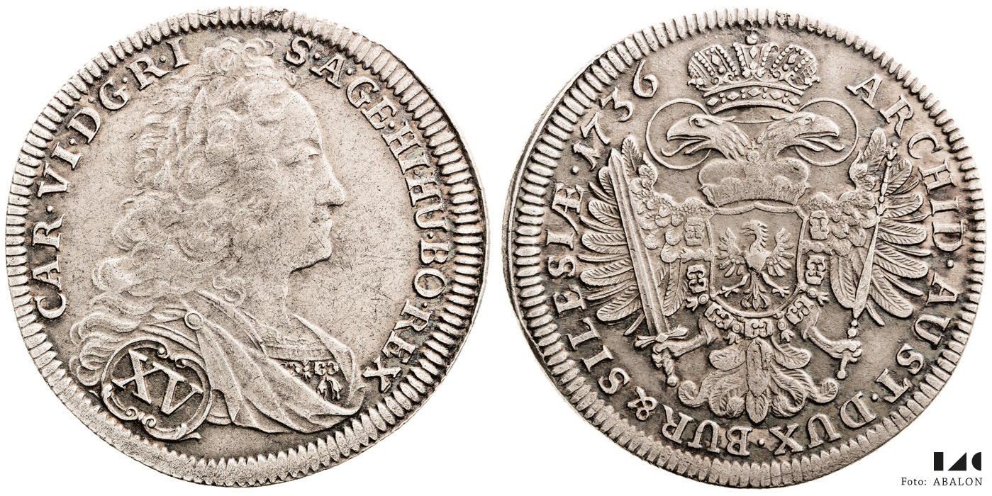 Karel VI. (1711-1740) XV krejcar 1736, Vratislav, Hal. 1914