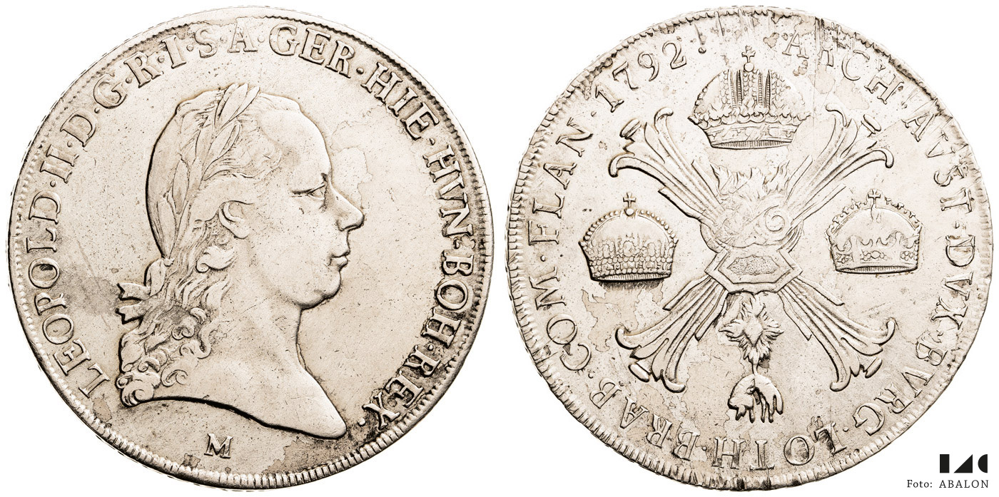 Leopold II. (1790-1792) Tolar 1792 M, křížový, Her. 45, 29,32 g, dr.vada mater.