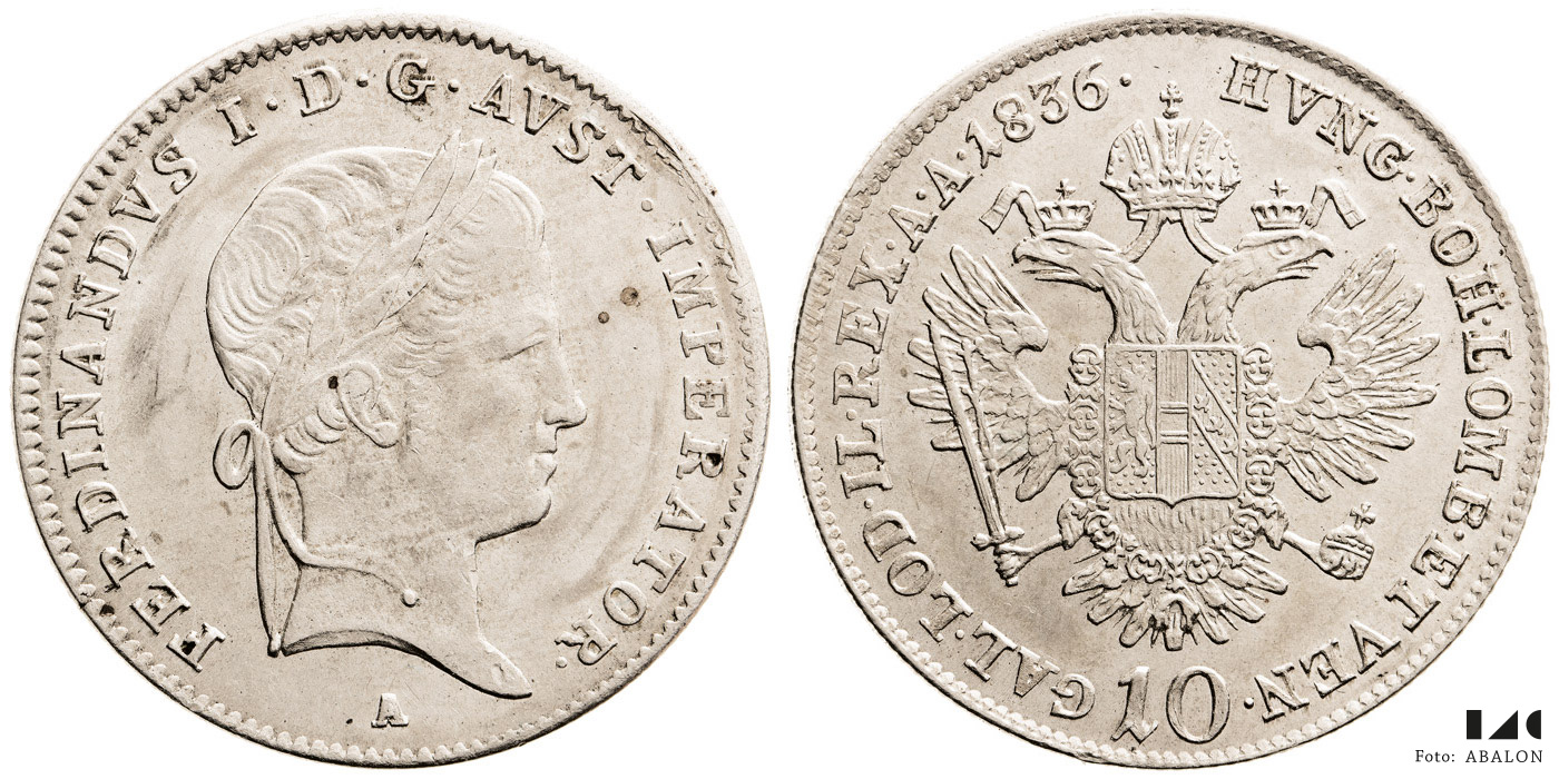 Ferdinand V. (1835-1848) 10 krejcar 1836 A, Ferdinandus