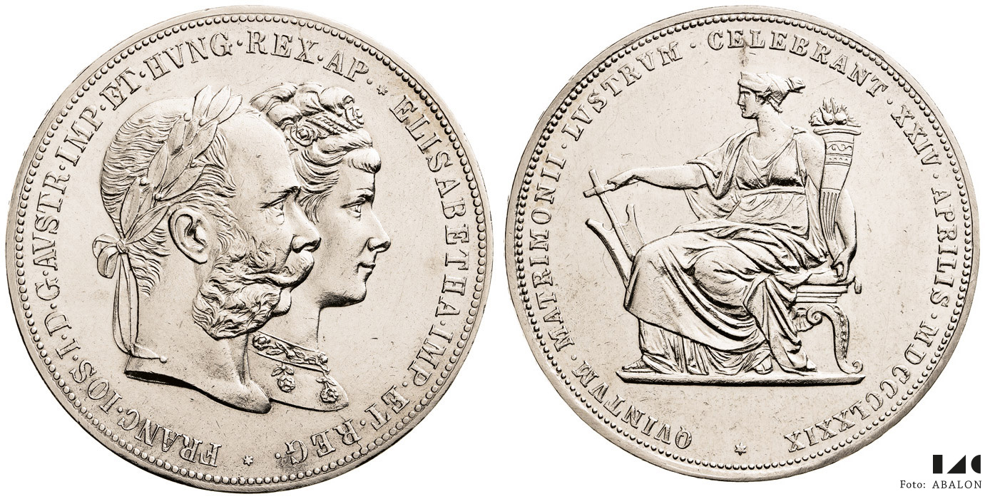 František Josef I. (1848-1916) 2 zlatník 1879, stříbrná svatba