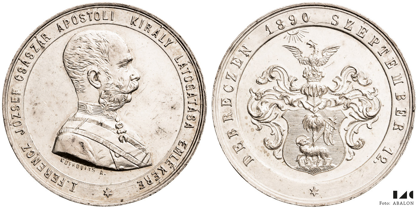Medaile k návštěvám Návštěva města Debreczen 1890, Sn 33 mm, sig. Löfkovitz