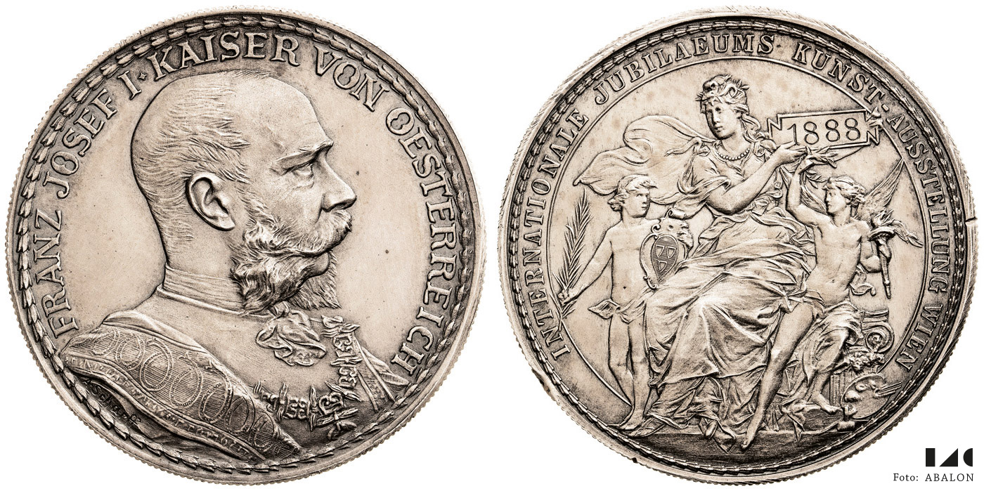 Medaile k výstavám Medaile k mezinárodní umělecké výstavě 1888 ve Vídni, Ag 37 mm, 24,90 g, sig. Scharff, n. hr.