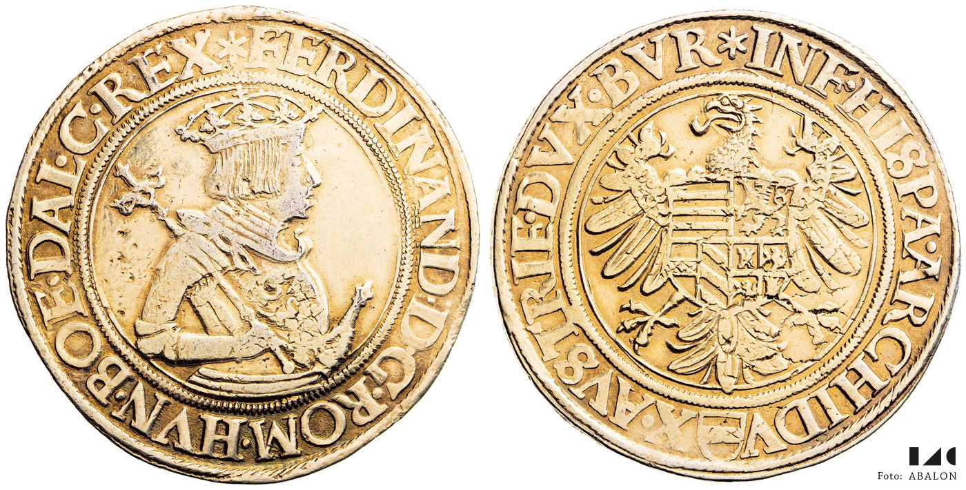 Ferdinand I. (1521-1564) Tolar b.l., Vídeň, Dav. 8009, 28,96 g, pozlacený