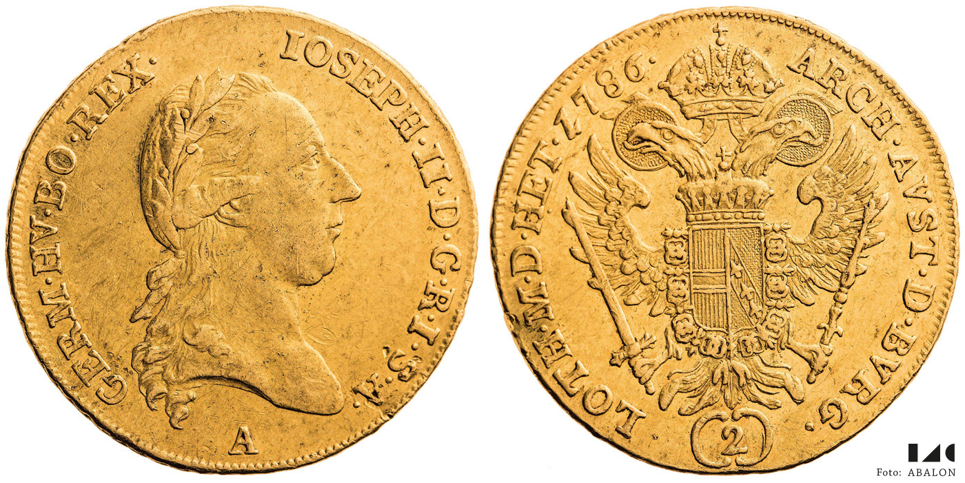 Josef II. (1765-1790) 2 dukát 1786 A, 6,96 g, Her. 5, dr. hr.