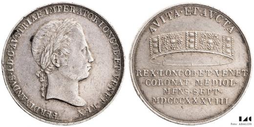 Ferdinand V. Žeton- korunovace na lombardského - benátského krále 1838 v Miláně, Ag 21,5 mm, 5,47 g, sig. Manfredini, Nov. XVIII. G8b, min. škr.