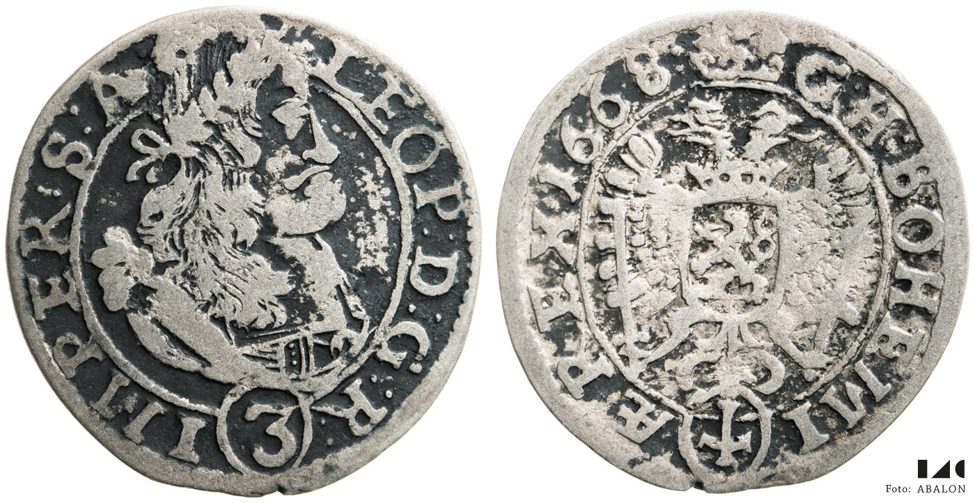 3 krejcar 1668, Jáchymov, Seling, Hal. 1486
