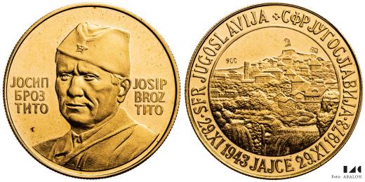 Medaile k 30. výročí konference v Jajce, J.B.Tito, Au 28 mm, 14,14 g, 900/1000