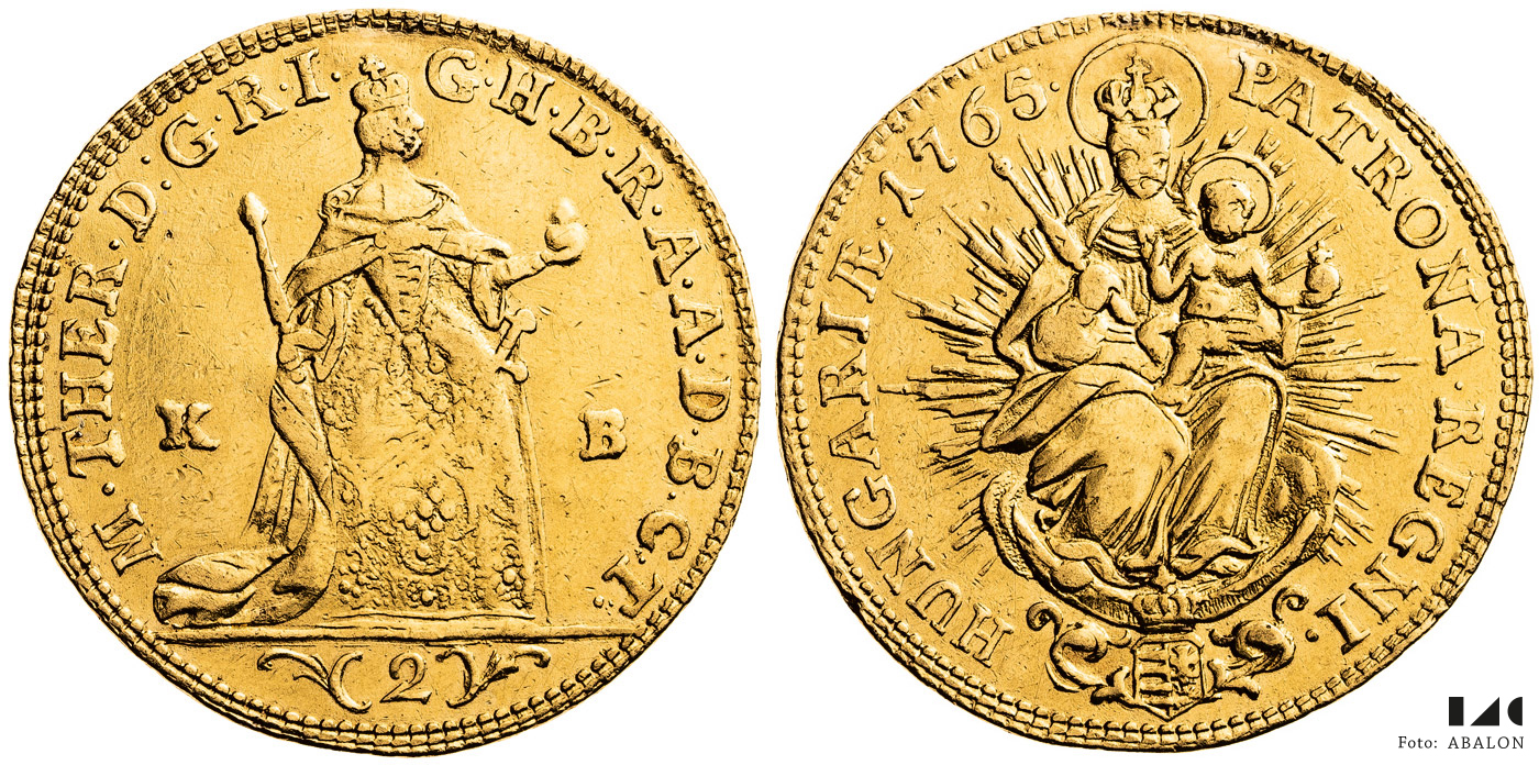 2 dukát 1765 KB, Hus. 1648, 6,91 g, perf. opravená stopa po oušku