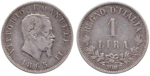 Viktor Emanuel II. 1861-1878, 1 lira M/BN, Ag