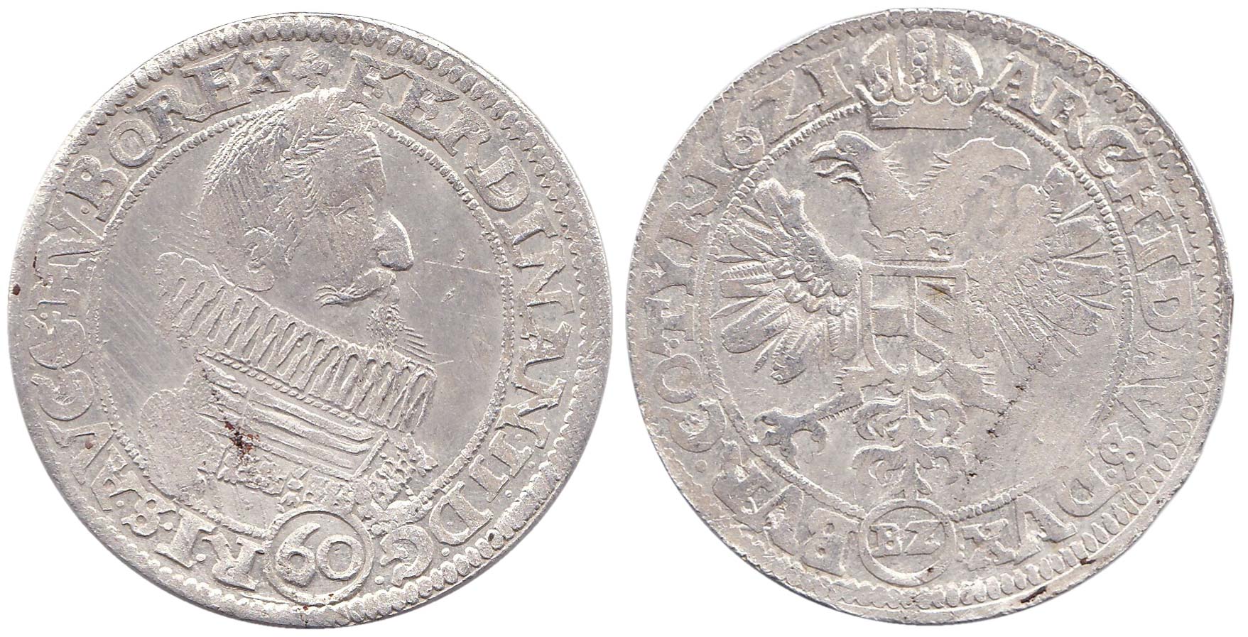 60 krejcar 1621 BZ Olomouc-Zwirner, MKČ 898, 14,54g dr.škr., dr.vady kovu