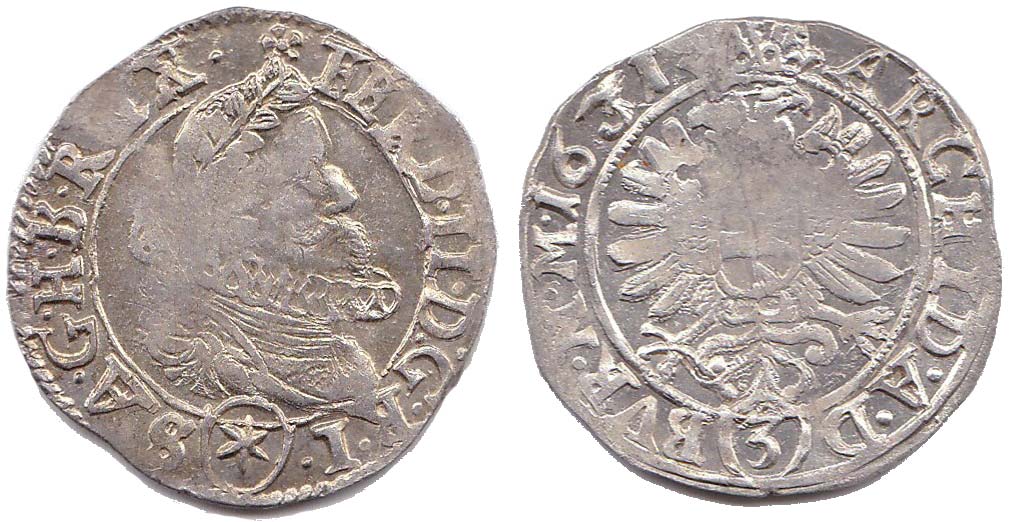 3 krejcar 1631 Kutná Hora-Hölzl, MKČ 812 R nedor.