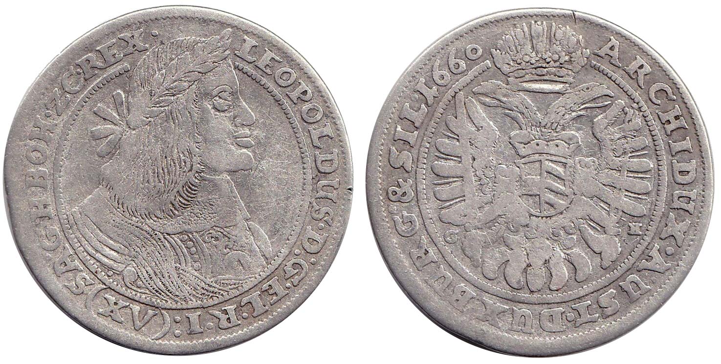XV krejcar 1660 G-H, Vratislav-Hübner, MKČ 1589, Höllhuber 60.1. var., chyboražba, zkratka ELECTVS jako ZC R