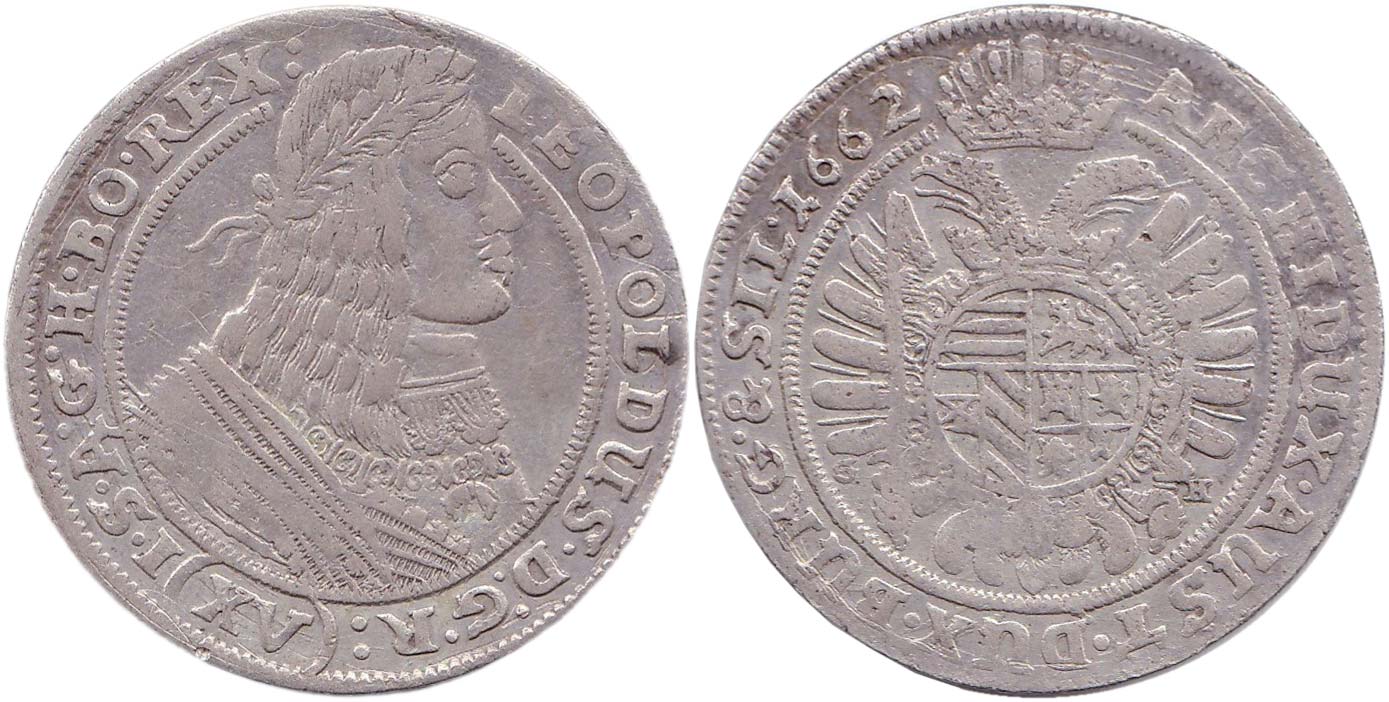 XV krejcar 1662 GH Vratislav-Hübner, MKČ 1590, Höllhuber 62.2.3