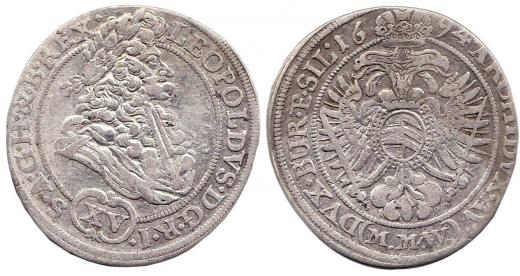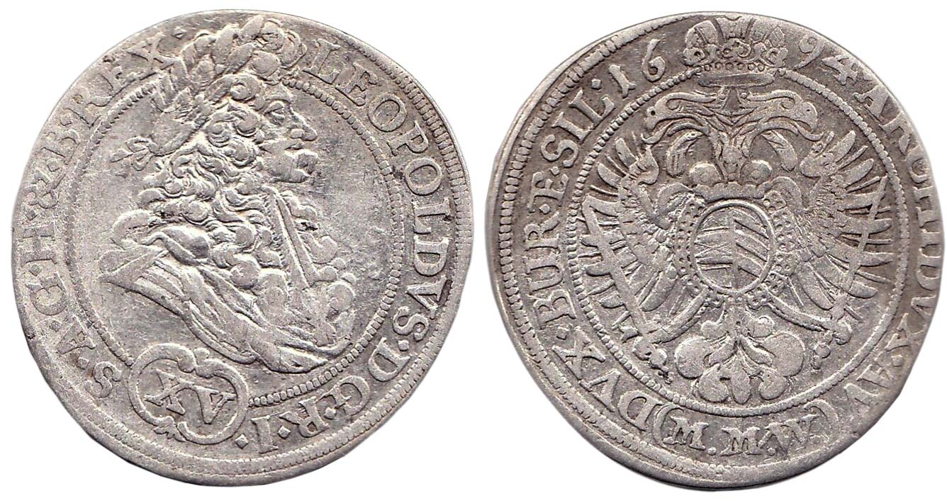 XV krejcar 1694 MMW, Vratislav-Wackerl, MKČ 1603, Höllhuber 94.1.9