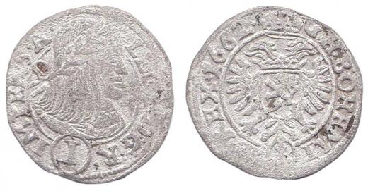 1 krejcar 1662 Praha-Margalík, MKČ 1430, tento ročník uvádí Halačka až v dod.č.1 RR mělká ražba, ned., st.kor.
