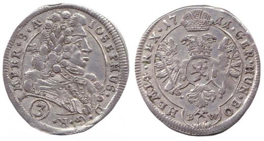3 krejcar 1711 BW Kutná Hora-Wohnsiedler, MKČ 1731