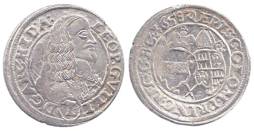 1 krejcar 1658 Kroměříž-J.J.Huser, značka úhoř bez korunky, SV 114