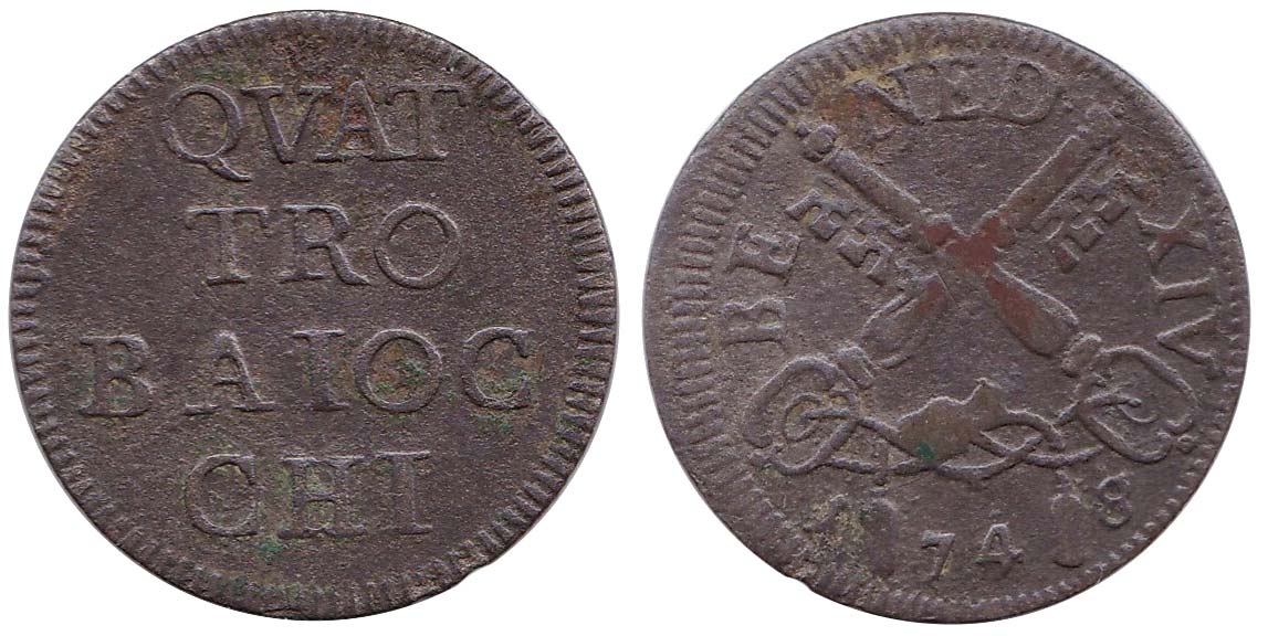 4 baiocchi 1748, mincovna Řím, Berman 2775