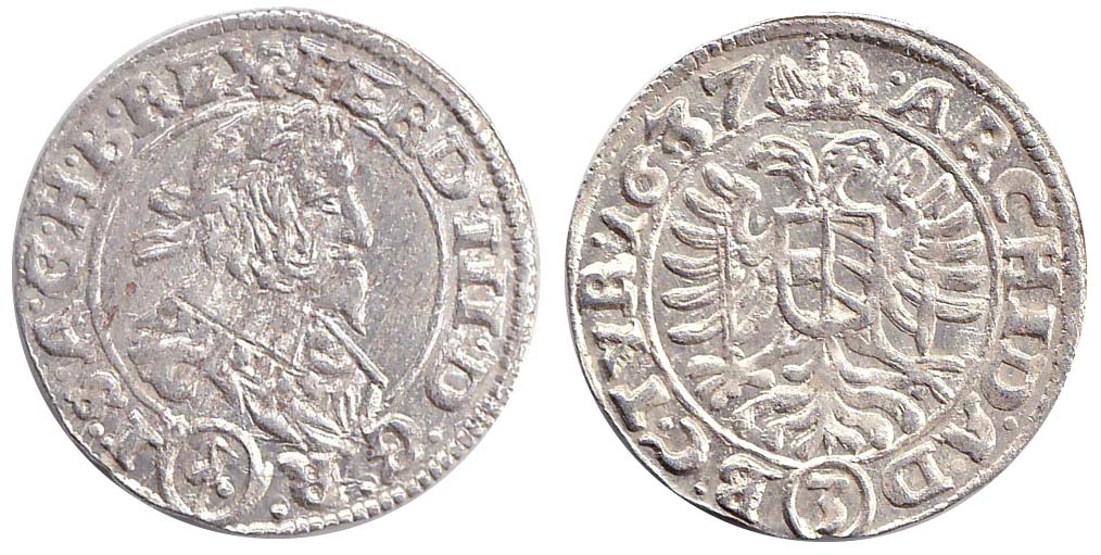 3 krejcar 1637 Vídeň-Stadler vady kovu v av.