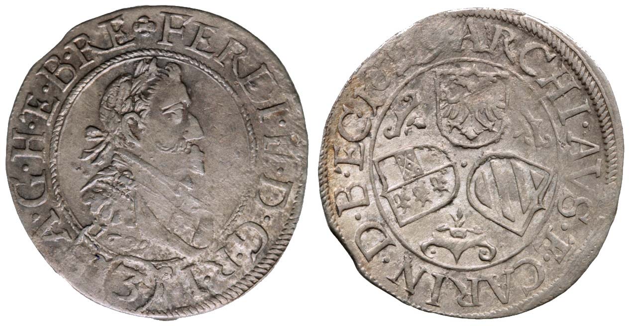 3 krejcar 1629 Sv.Vít, křížená ražba s letopočtem v líci i rubu, Hahn 50b/50a R válcovaný, dr.ned.