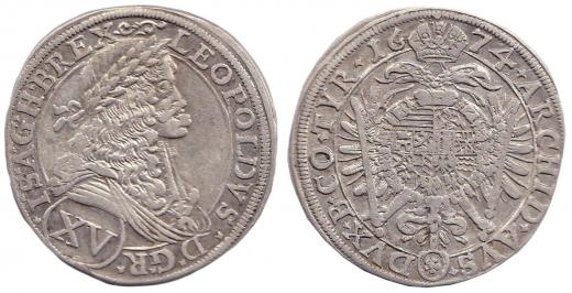 XV krejcar 1674 Vídeň-Faber, Nech.1912, Her.925, Höllhuber 74.1.9