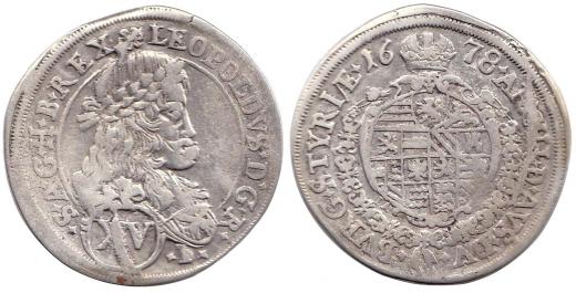 XV krejcar 1678 IA-N, Graz-Nowak, Nech.2157, Her.947, Höllhuber 78.1.3 vada razidla rv, dr.ned.