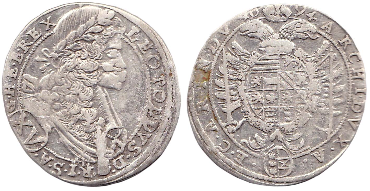 XV krejcar 1694 b.zn., Sv.Vít, Nech.2524, Her.967v, Höllhuber 94.3.3 n.ned.
