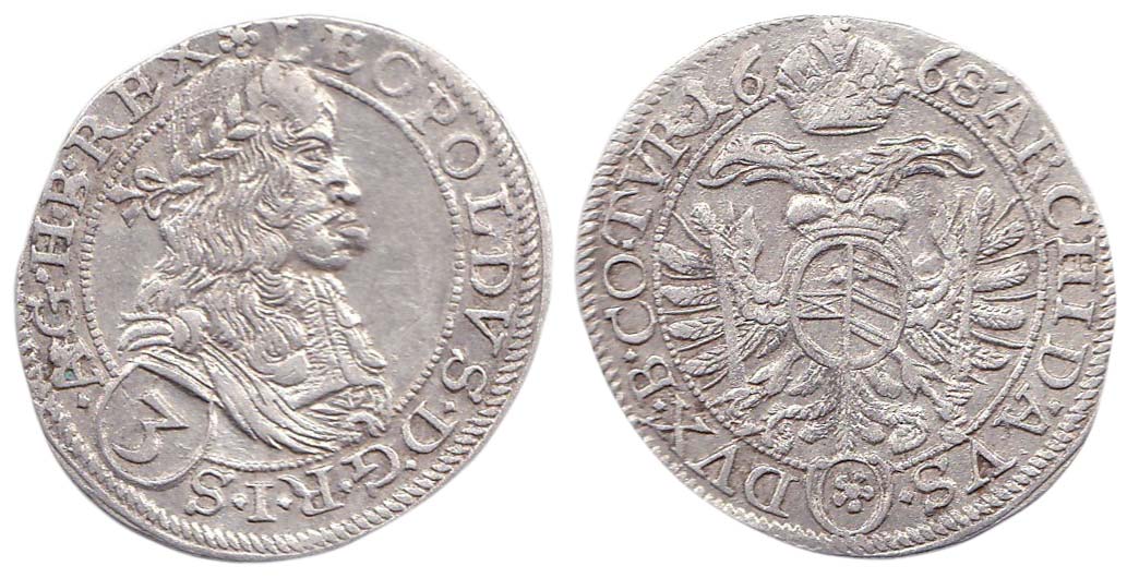 3 krejcar 1668 Vídeň-Faber, Nech.1966, Her.1315