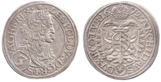 3 krejcar 1672 Vídeň-Faber, Nech.1969, Her.1318