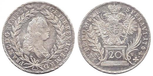 20 krejcar 1764 W-I, Vídeň, Eypelt.642, Nov.18 nep.just.