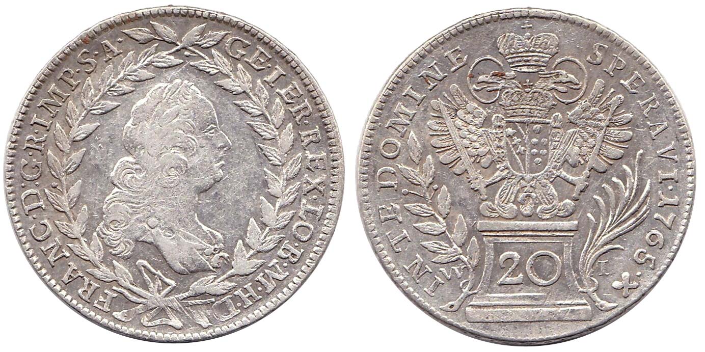 20 krejcar 1765 W-I, Vídeň dr.ned., dr.just.