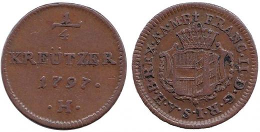 1/4 krejcar 1797 H Günzburg, ražba pro Přední Rakousko, pěkná patina, Nov.2 R nep.škr.