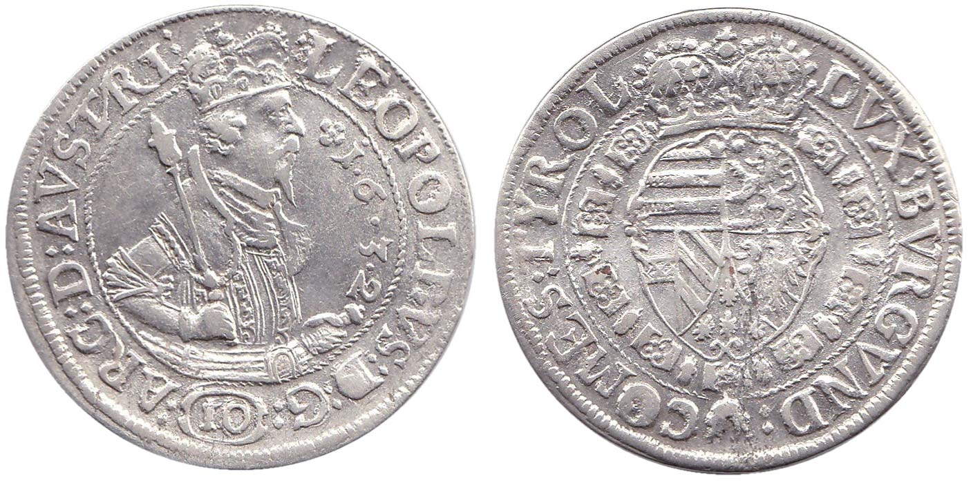 10 krejcar 1632 Tyroly-Hall, Hahn 21 dr.vada kovu v rev.