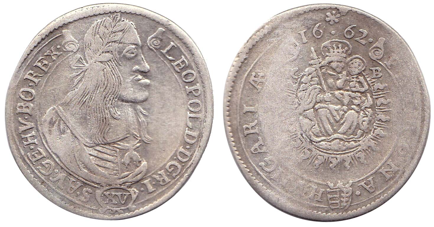 XV krejcar 1662 KB, Nech.1149, Husz.1423 rub nedor.