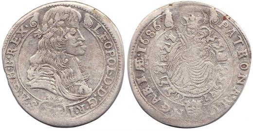 XV krejcar 1686 KB, Nech.1172, Husz.1427 dr.ned.