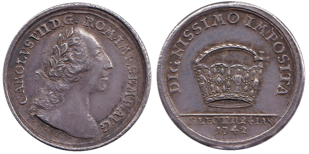 Ag žeton 1742, 22mm, poprsí/říšská koruna, DIGNISIMO IMPOSITA, krásná patina R