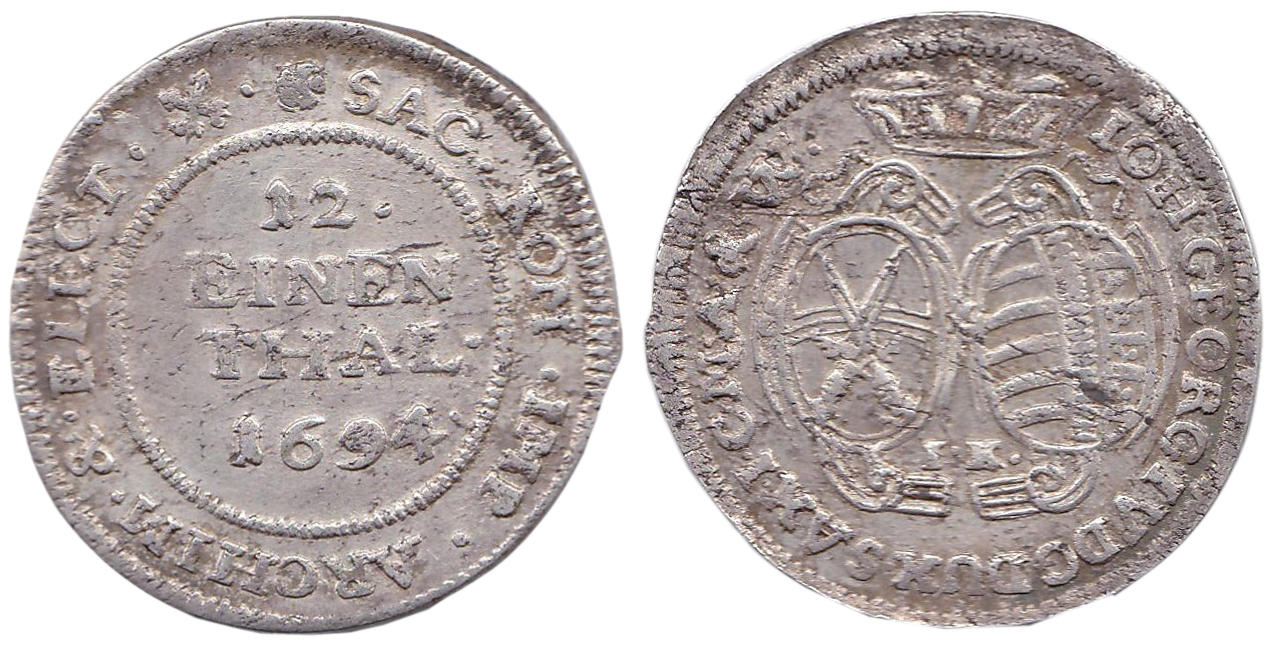 1/12 tolaru 1694 IK, pěkná patina