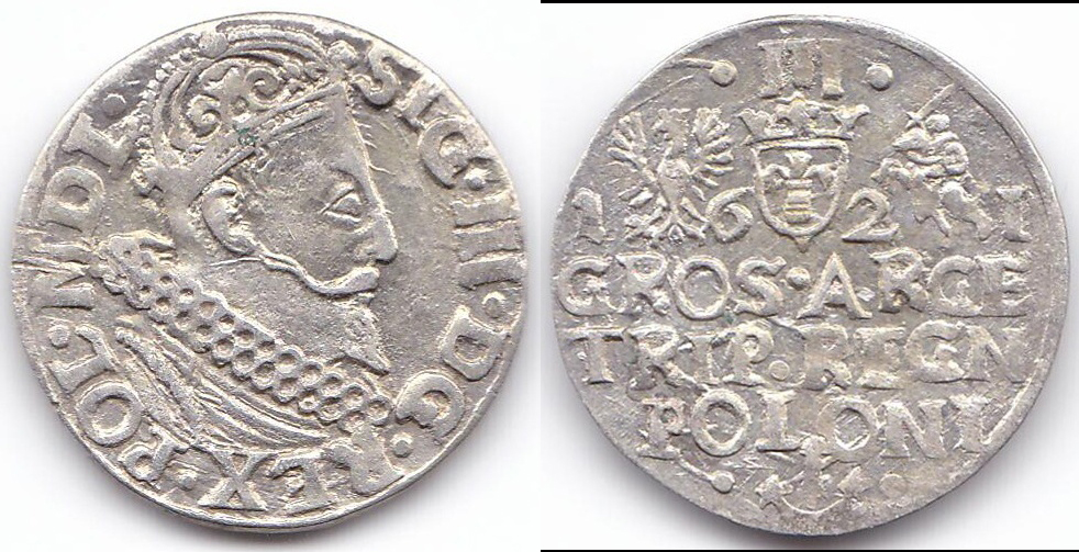 III groš 1621, Krakov, Kop. 1226, nep.ned.