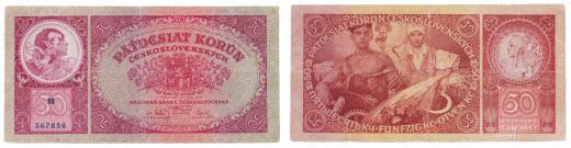 50 Kor. (1929), série H 567856, Nov.22a, Bajer 24a