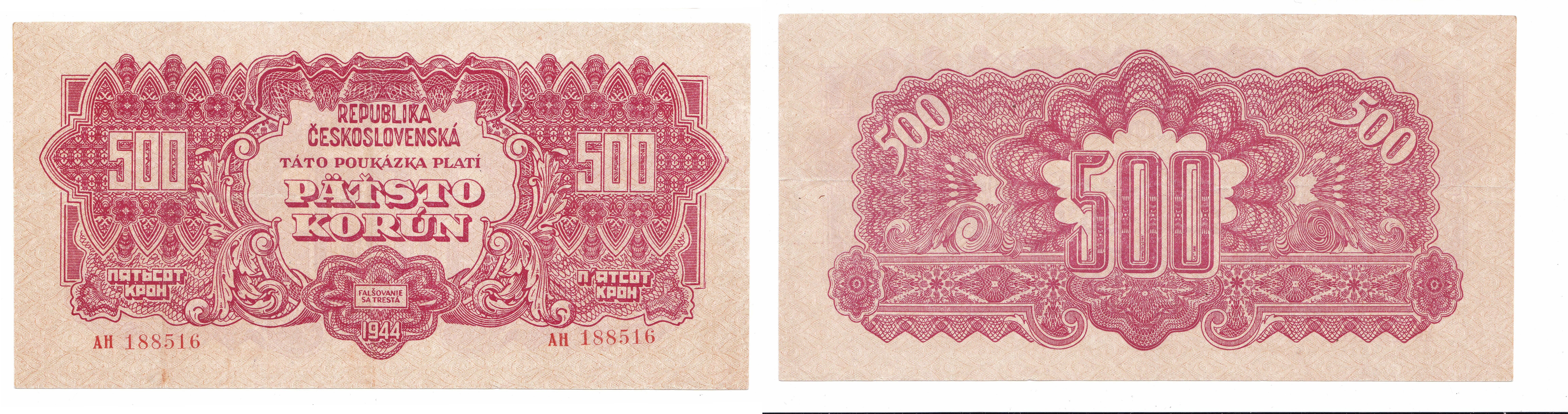 500 Kor. (1944), série AH 188516, Nov.60, Bajer 60